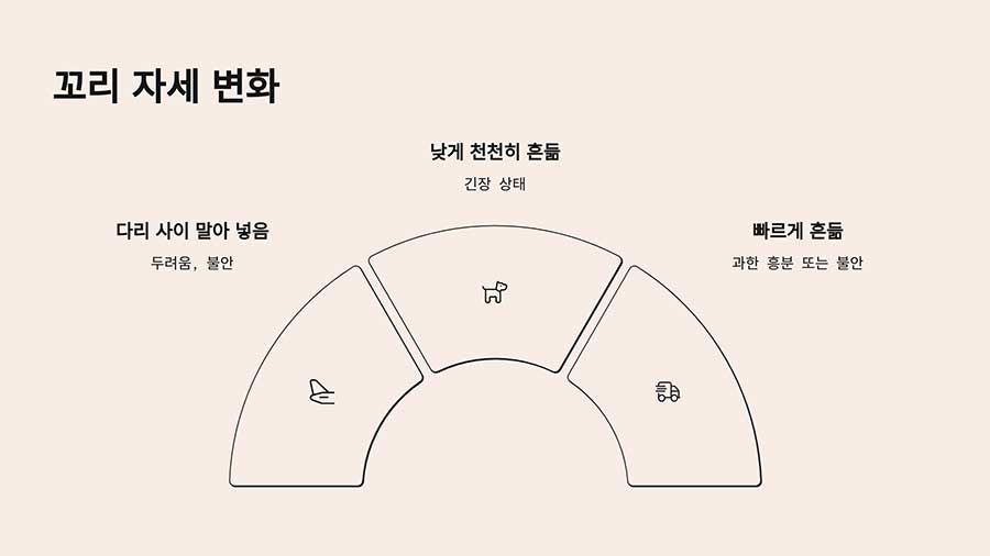 강아지의 꼬리는 감정을 표현하는 중요한 신체 부위입니다. 꼬리가 축 처져 있거나 다리 사이에 말려 있다면 두려움을 느끼고 있거나 스트레스를 받고 있을 가능성이 높습니다. 반대로, 꼬리를 너무 빨리 흔드는 것도 불안감을 나타낼 수 있습니다.
