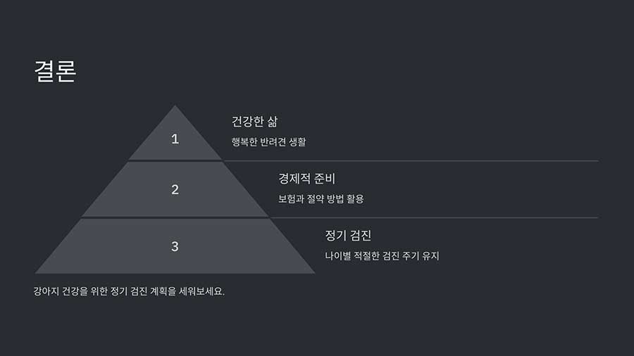 가정견 건강 검진은 반려견의 행복한 삶을 위한 필수적인 과정입니다. 검진 비용이 부담스러울 수 있지만, 미리 대비하고 보험을 활용하면 경제적인 부담을 줄일 수 있어요. 무엇보다도 가장 중요한 것은 강아지의 건강을 지키는 것이니, 정기적으로 검진을 챙겨주세요. 여러분의 소중한 반려견이 오랫동안 건강하고 행복하게 지낼 수 있도록, 지금부터 건강 검진 계획을 세워보는 건 어떨까요? 여러분의 강아지는 어떤 건강 관리 루틴을 가지고 있나요? 댓글로 함께 이야기 나눠요!