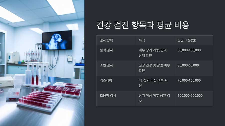 반려견 건강 검진은 여러 가지 검사로 구성됩니다. 각 검사마다 목적이 다르고, 병원마다 비용 차이가 있어요. 아래 표를 참고하면 대략적인 비용을 예상할 수 있습니다.