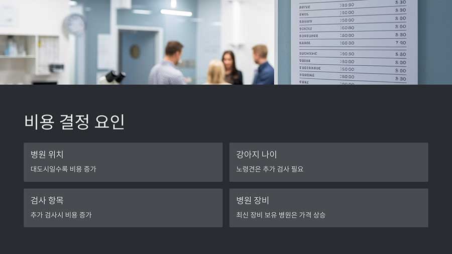 병원의 위치, 시설, 장비 수준, 수의사 경력 등에 따라 검진 비용이 다를 수 있습니다.