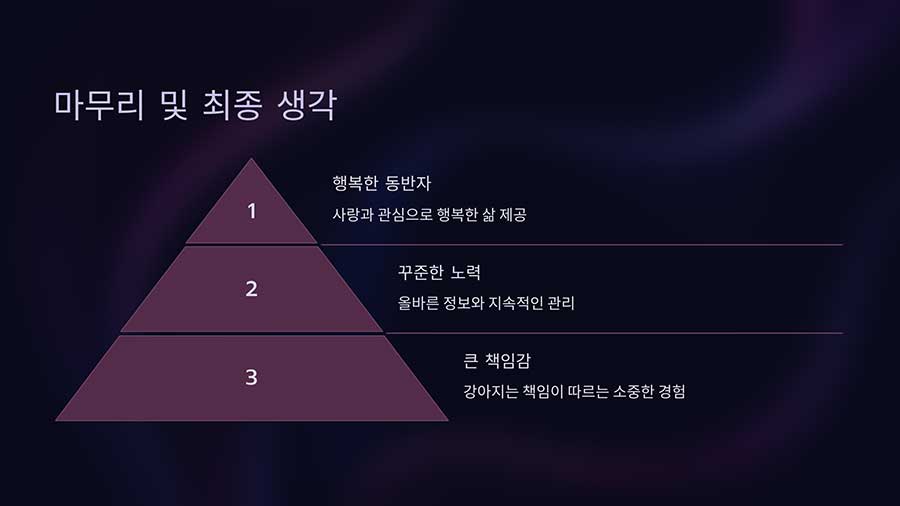 강아지를 키운다는 것은 큰 책임이 따르는 일이지만, 그만큼 행복과 기쁨을 주는 소중한 경험이기도 합니다. 올바른 정보와 꾸준한 노력만 있다면, 반려견과 더욱 건강하고 즐거운 시간을 보낼 수 있습니다. 여러분의 강아지가 행복한 삶을 살 수 있도록 사랑과 관심을 아끼지 마세요!