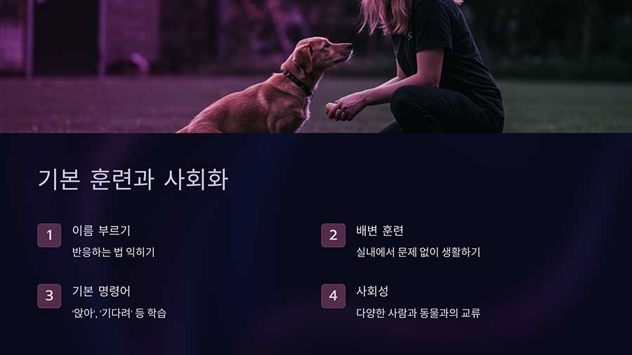 적절한 훈련과 사회화 과정을 거치면 반려견과 더욱 원활한 관계를 형성할 수 있습니다.