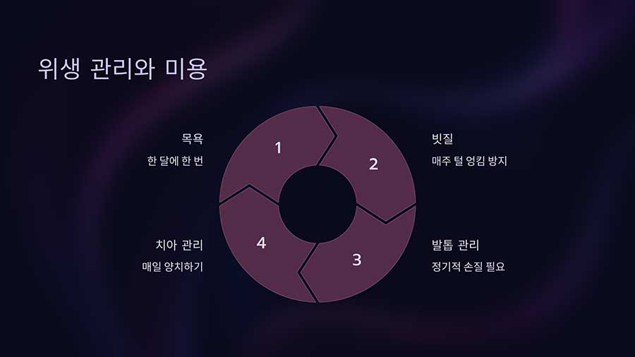반려견의 건강한 삶을 위해서는 꾸준한 위생 관리가 필요합니다. 털 손질, 목욕, 치아 관리 등을 정기적으로 시행해야 합니다.