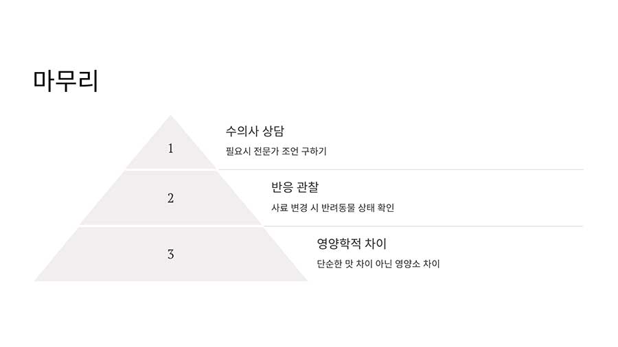 - 가격만 보고 사료를 선택하는 것 (영양 성분 비교 필수!)
