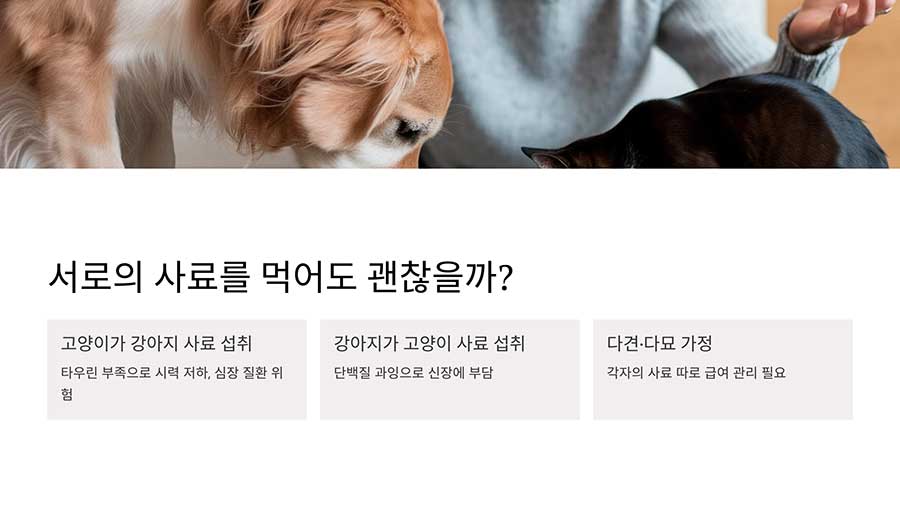 - 강아지와 고양이 사료를 혼용하여 급여하는 것