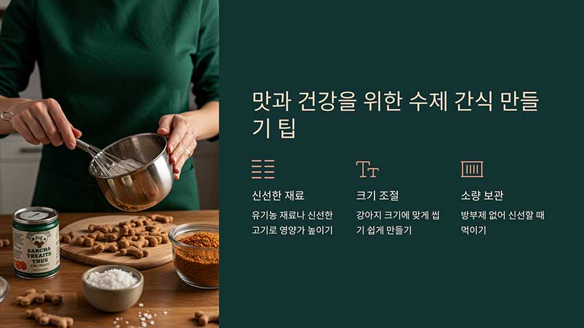 이제 간단한 수제 간식 만들기에 도전해 보세요! 강아지가 맛있게 먹을 모습을 상상하면 더 즐겁게 만들 수 있을 거예요. 다음 섹션에서는 맛과 건강을 위한 팁을 소개할게요.
