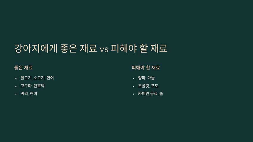 강아지에게 좋은 재료 vs 피해야 할 재료