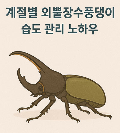 지금부터 봄·여름·가을·겨울별 외뿔장수풍뎅이 습도 관리 핵심 포인트를 알아보겠습니다.