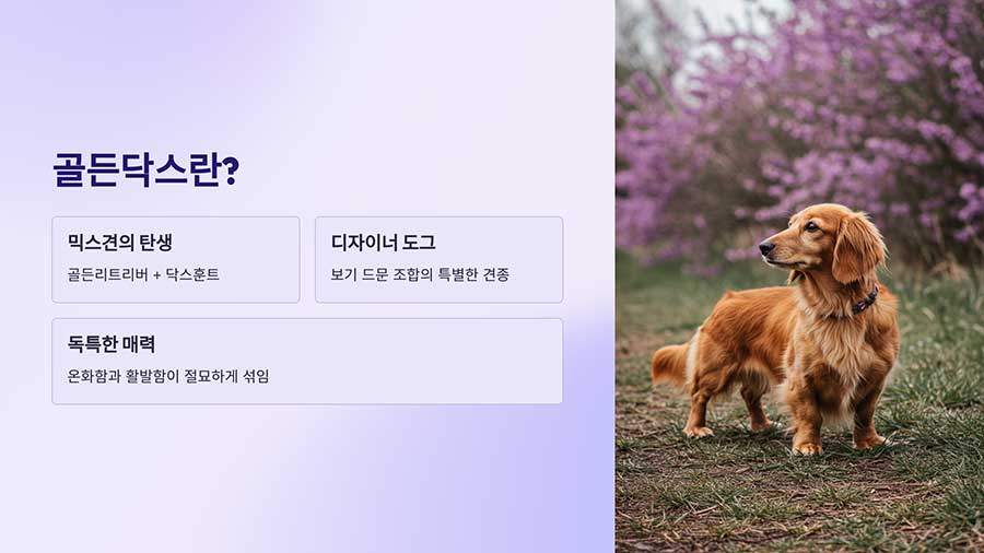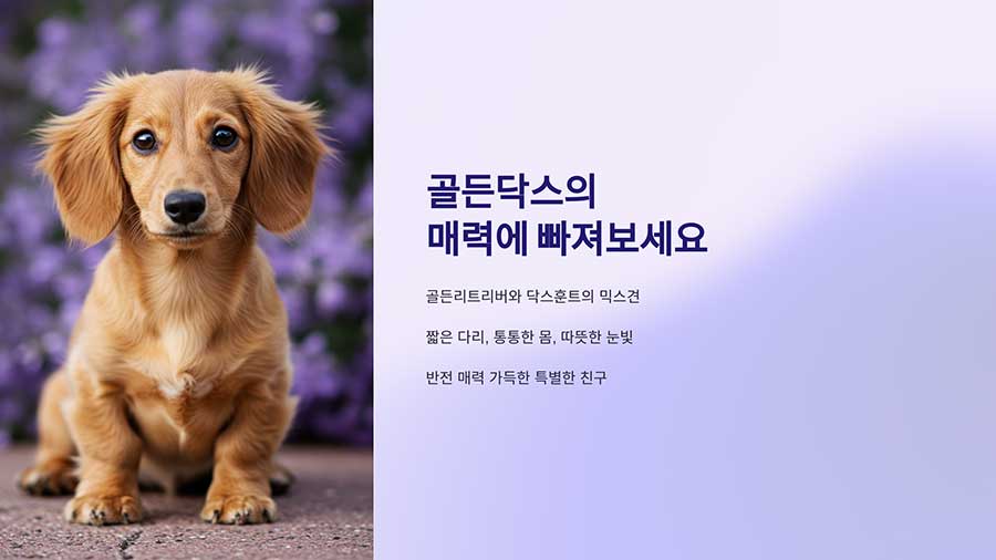안녕하세요, 반려견 덕후이자 골든닥스 보호자인 저예요! 처음 골든닥스를 만났던 날이 아직도 생생하게 기억나요. 짧은 다리에 통통한 몸, 그런데 그 눈빛은 세상 따뜻하고 사람을 잘 따르더라고요. 어느 날 골든리트리버와 닥스훈트의 믹스견이 있다는 걸 우연히 알게 되었고, 호기심에 알아보다가 바로 반하게 되어버렸죠. 오늘은 이 특별한 믹스견, '골든닥스'의 매력을 찬찬히 파헤쳐 보려고 해요. 진짜 말도 안 되게 귀엽고, 성격도 완전 반전 매력이라니까요!