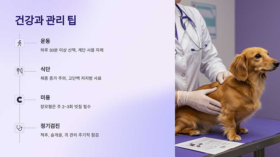 | 정기검진 | 척추 X-ray, 슬개골 및 귀 관리 주기적 점검 |
