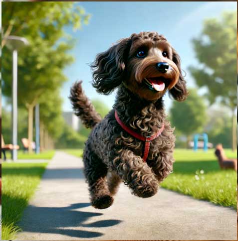 닥스훈트의 긴 몸통과 푸들의 곱슬털이 만난 믹스견으로