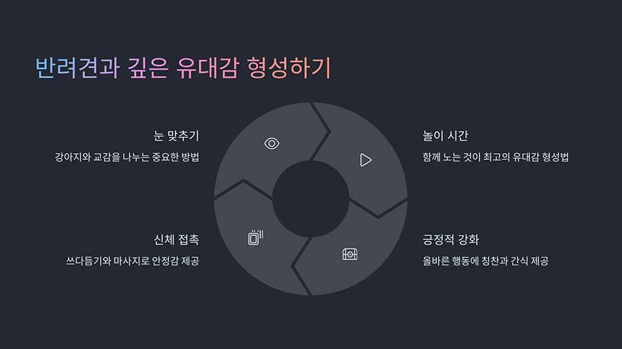 강아지와의 관계는 신뢰를 바탕으로 형성됩니다. 함께하는 시간을 늘리고, 긍정적인 경험을 공유하면 유대감을 깊게 만들 수 있습니다.