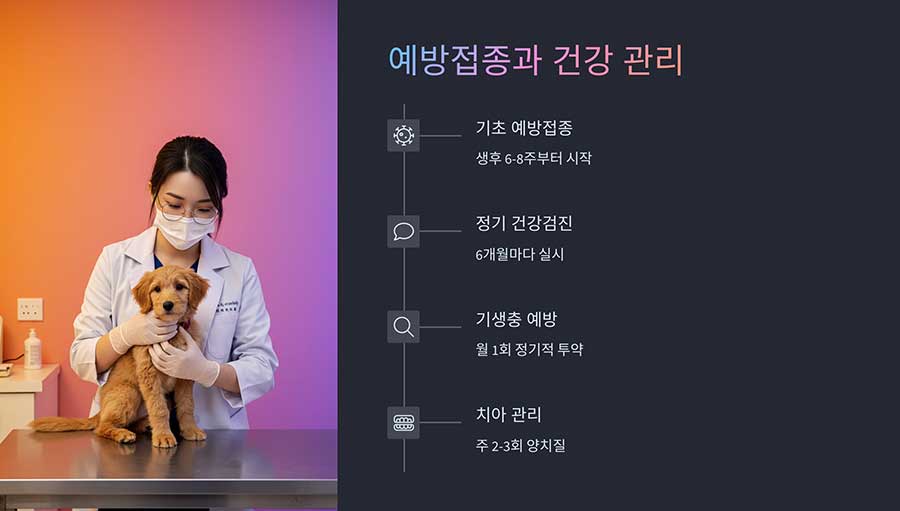 강아지의 건강을 지키기 위해 정기적인 건강 검진과 예방접종은 필수입니다. 특히 어린 강아지는 면역력이 약하기 때문에 적절한 시기에 예방접종을 맞는 것이 중요합니다.
