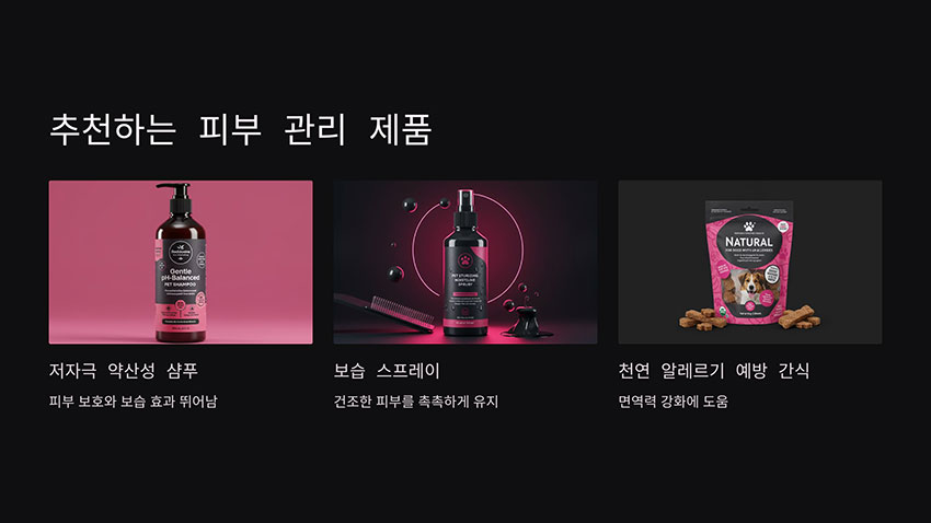 피부 건강을 유지하기 위해 반려동물에게 적절한 제품을 사용하는 것이 중요합니다. 다음과 같은 제품을 고려해 보세요.