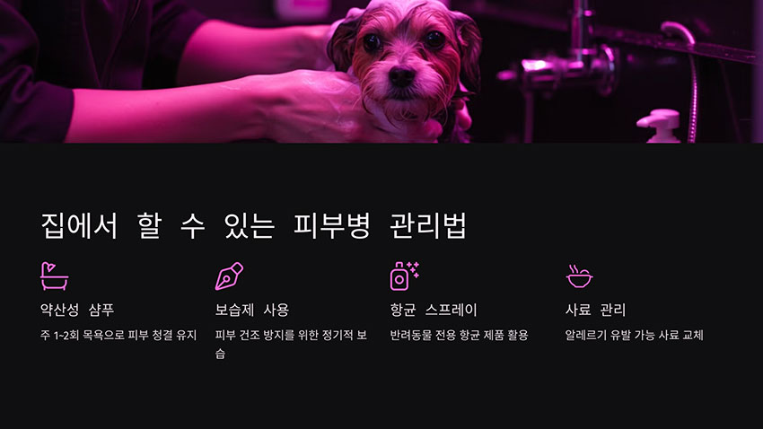 반려동물 피부병이 심하지 않은 경우, 집에서 기본적인 관리로 개선될 수 있습니다. 다음과 같은 방법을 실천해 보세요.