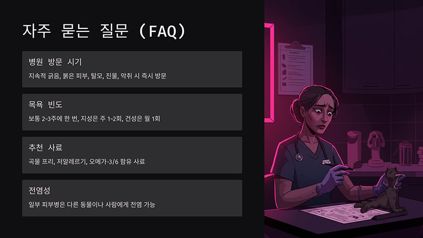 - 약산성 샴푸로 주기적인 목욕시키기 (일주일 1~2회)