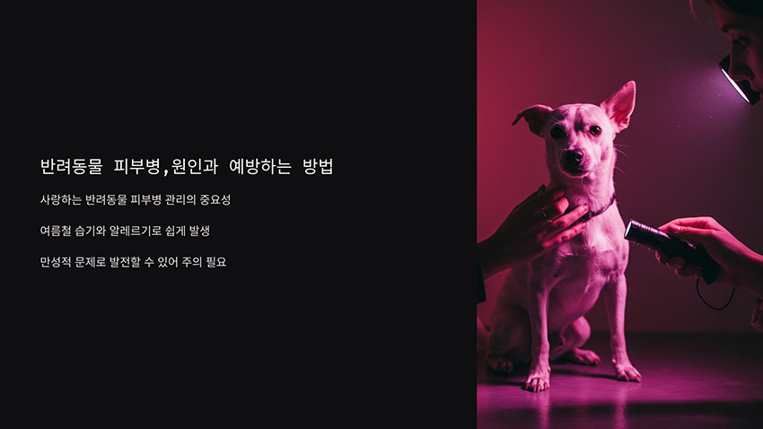 안녕하세요, 반려동물을 키우다 보면 피부병 문제로 고민하는 일이 많아지죠. 저도 강아지를 키우면서 피부 트러블 때문에 병원을 방문한 적이 많았어요. 특히 여름철 습기와 알레르기 등으로 피부 질환이 쉽게 발생하는데요. 이번 글에서는 반려동물 피부병의 주요 원인과 예방하는 방법을 소개해 드릴게요. 우리 아이들이 건강한 피부를 유지할 수 있도록 함께 알아보아요!