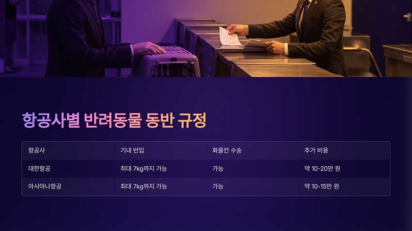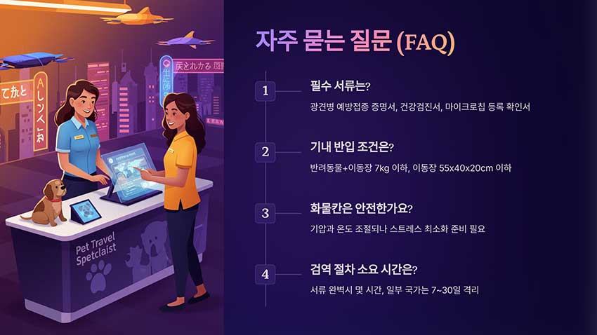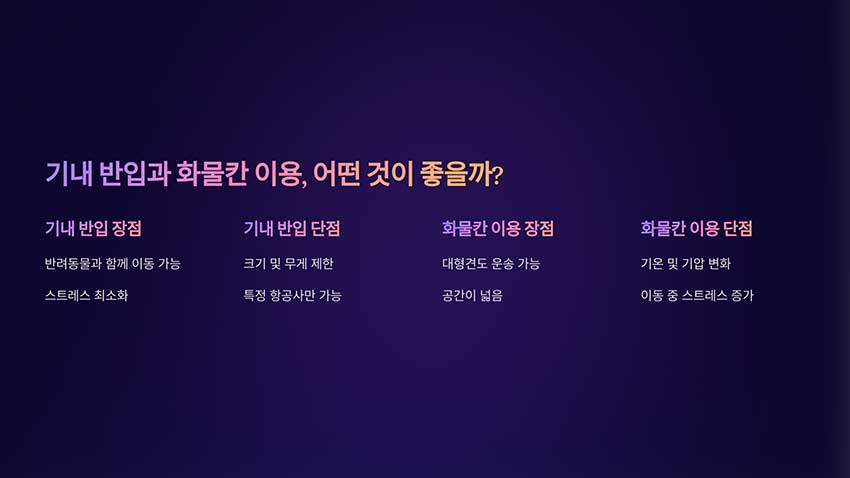 - 기내 반입 장점: 반려동물과 함께 이동 가능, 스트레스 최소화