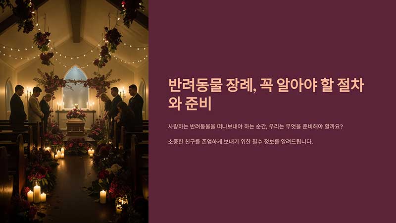 안녕하세요, 여러분. 반려동물과 함께하는 시간은 너무나 소중하지만, 언젠가 우리 곁을 떠나야 하는 순간이 찾아옵니다. 막상 그 순간이 오면 무엇을 해야 할지 몰라 당황하기 쉽죠. 저 역시 반려동물을 키우는 입장에서, 사랑하는 아이를 어떻게 떠나보내야 하는지 많은 고민을 했습니다. 오늘은 동물 장례 절차와 준비 과정에 대해 자세히 알아보려고 합니다.