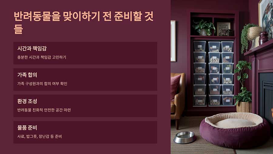 - 필요한 물품(사료, 밥그릇, 장난감 등) 준비