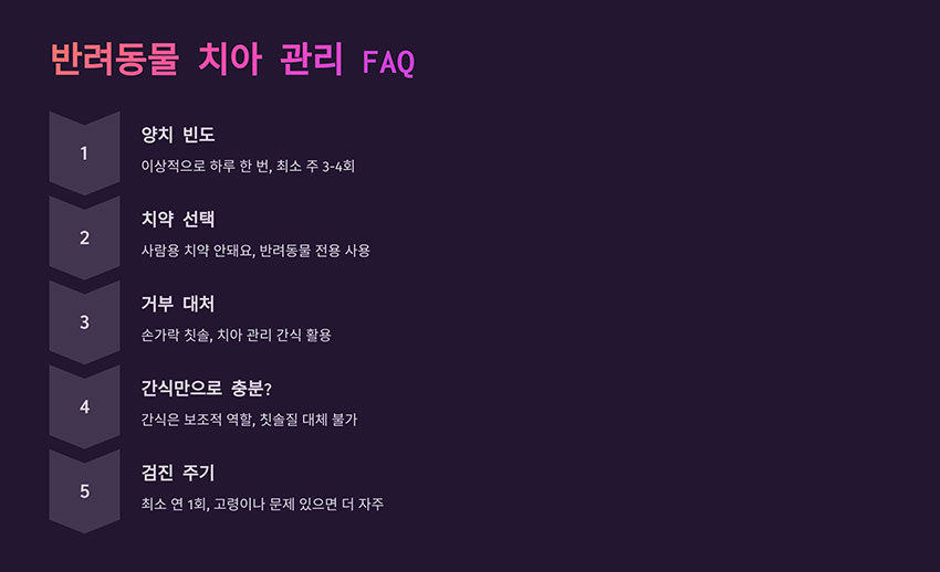 | 치약 | 불소가 없는 반려동물 전용 치약 | 모든 반려동물 |