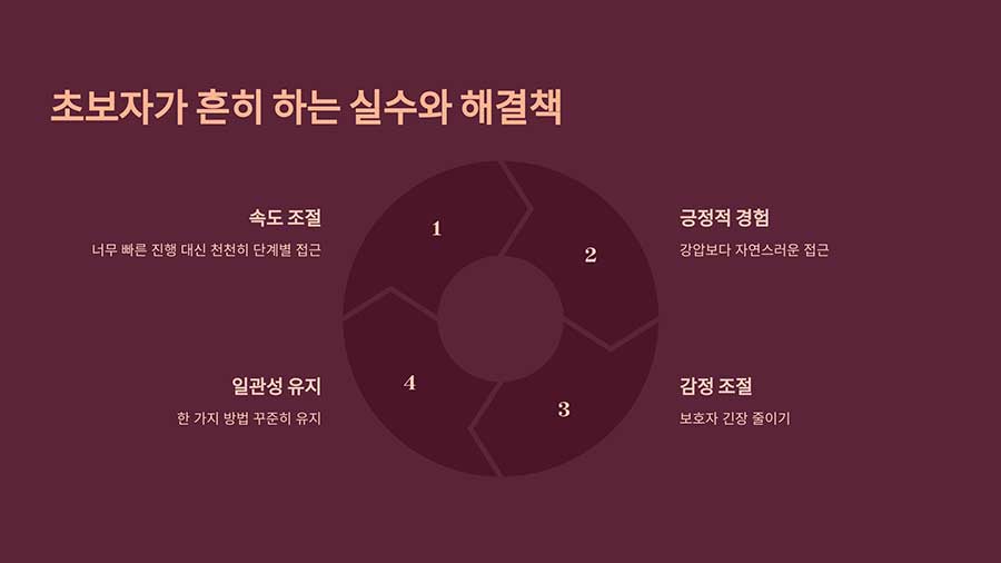 천천히, 긍정적인 방식으로 진행하는 것이 가장 중요합니다. 억지로 강요하면 오히려 반려동물에게 부정적인 경험을 남길 수 있어요.