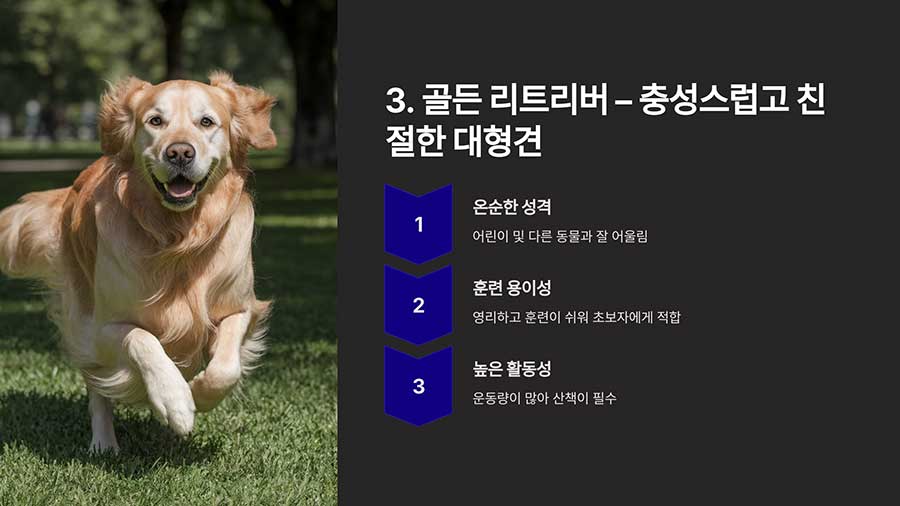 3. 골든 리트리버 – 충성스럽고 친절한 대형견