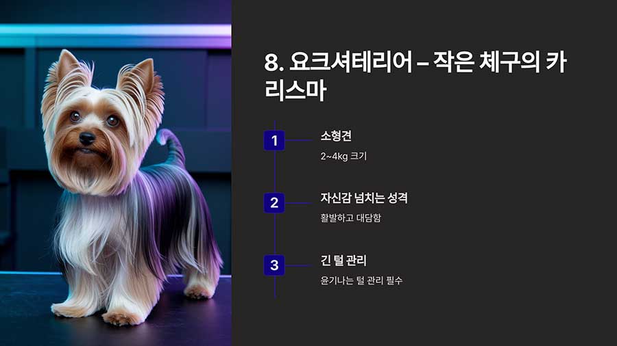 8. 요크셔테리어 – 작은 체구의 카리스마